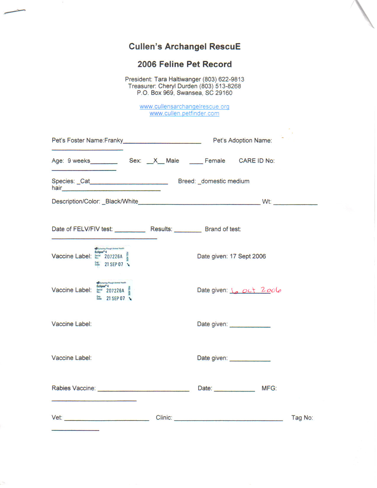 Contact Franky's Caretaker/Foster Directly: Main Email CARE (caretoadopt@gmail.com), (803) 622-9813
